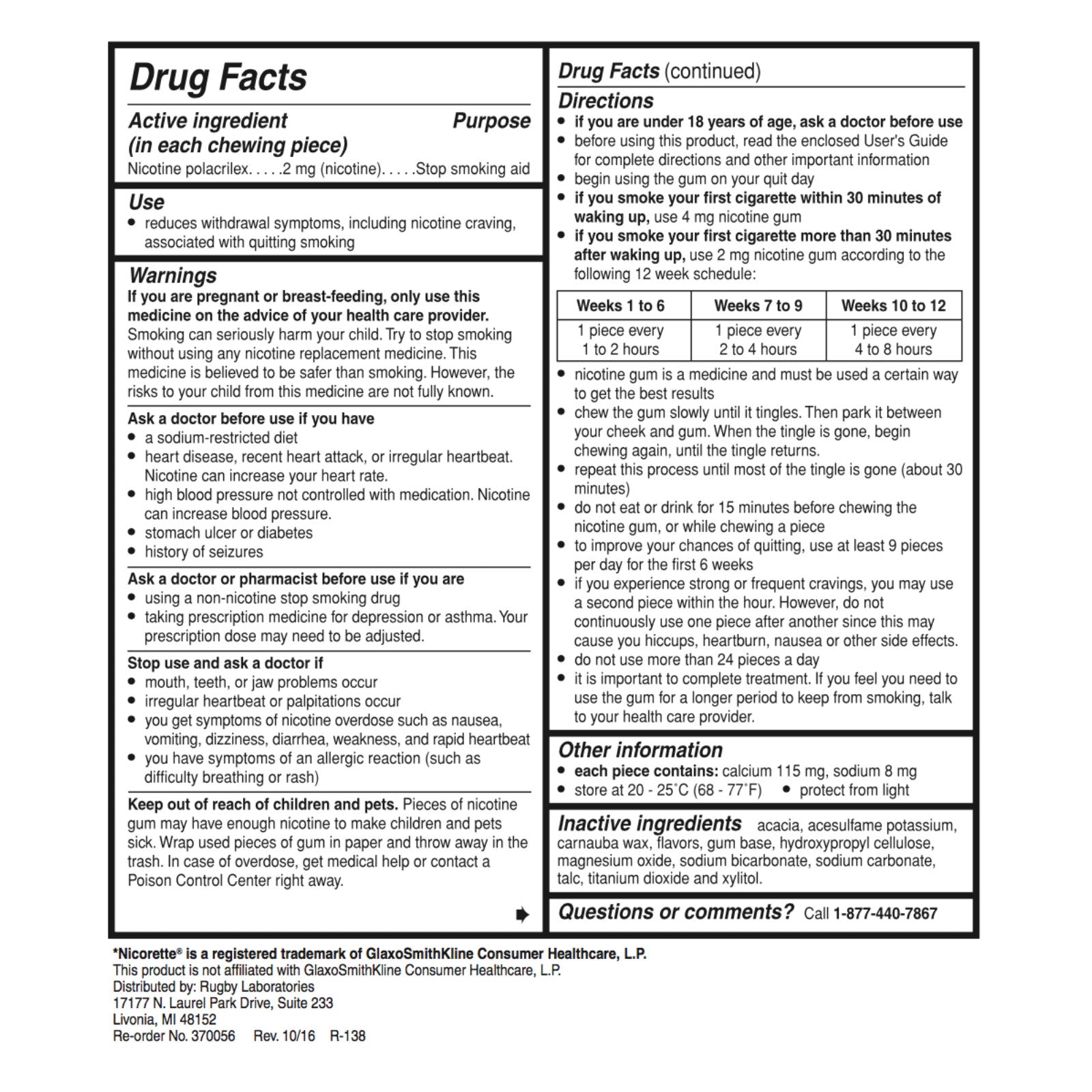 This gum has a 2mg dosage, recommended for people who smoked less than one pack of cigarettes daily. If you smoked more, Rugby Coated Mint is available in a 4mg dosage.