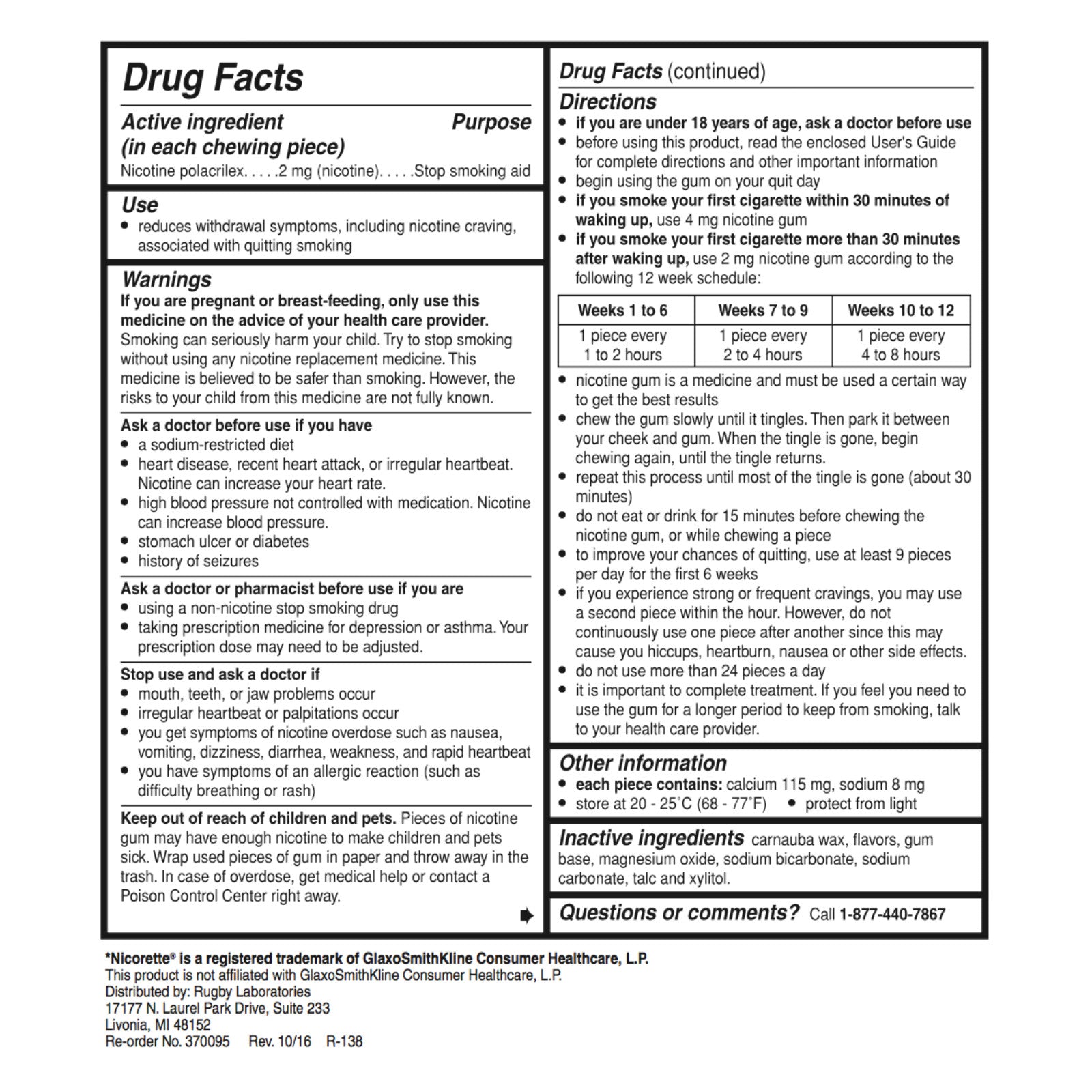 This gum has a 2mg dosage, recommended for people who smoked less than one pack of cigarettes daily. If you smoked more, Rugby Uncoated Mint is available in a 4mg dosage.