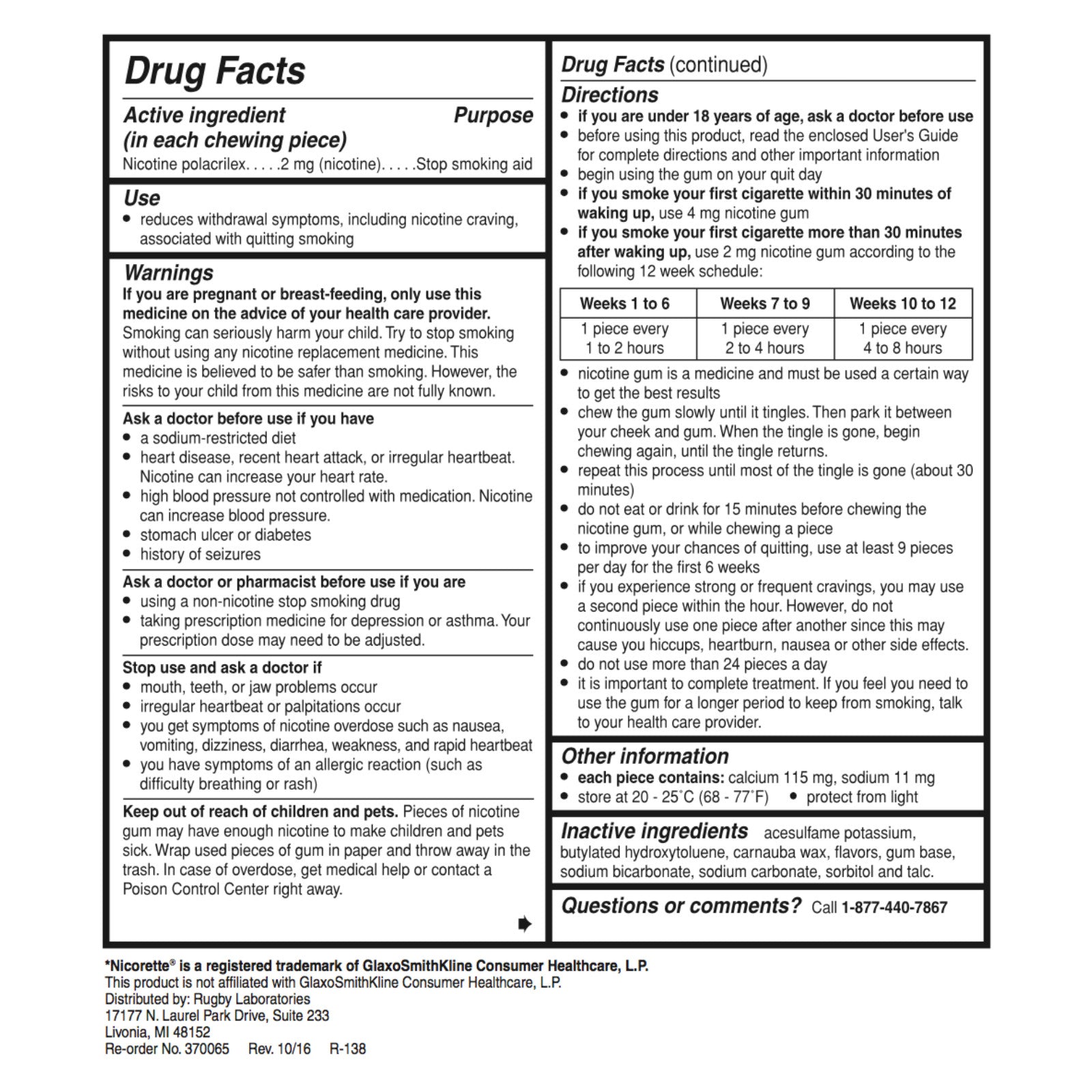Rugby Gum Uncoated 2mg Original 110 piece box