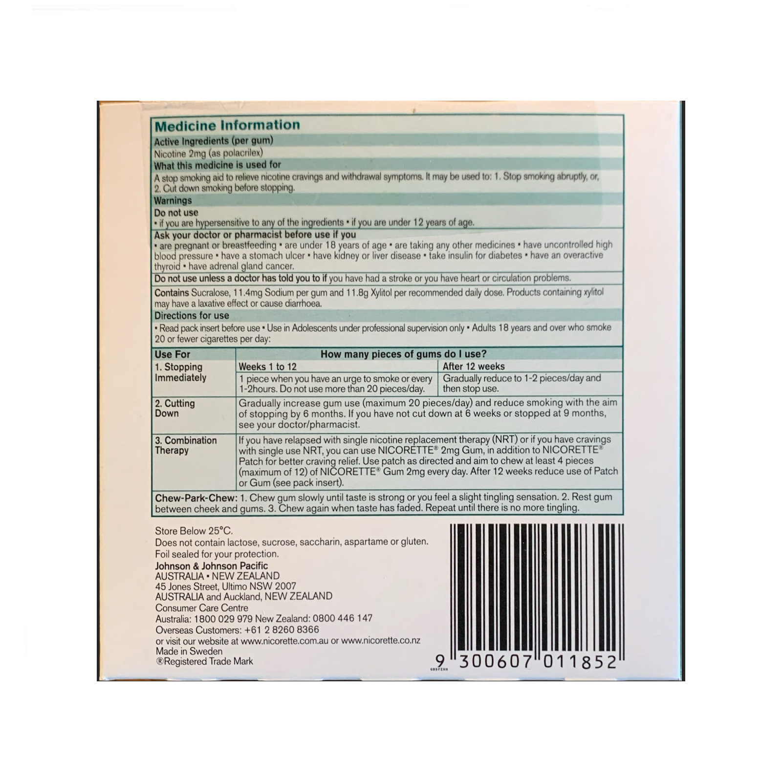Nicorette coated sugar free gum, by Johnson & Johnson, in a fresh fruit flavor, has a 2mg nicotine dosage.