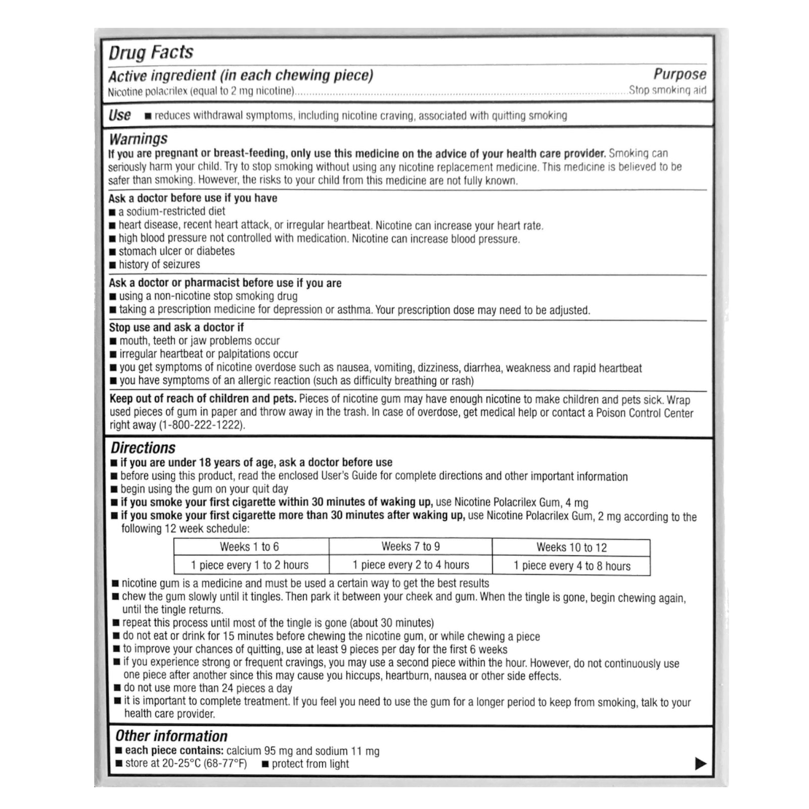 This gum has a 2mg dosage, recommended for people who smoked less than one pack of cigarettes daily. If you smoked more, Quitine is available in a 4mg dosage.