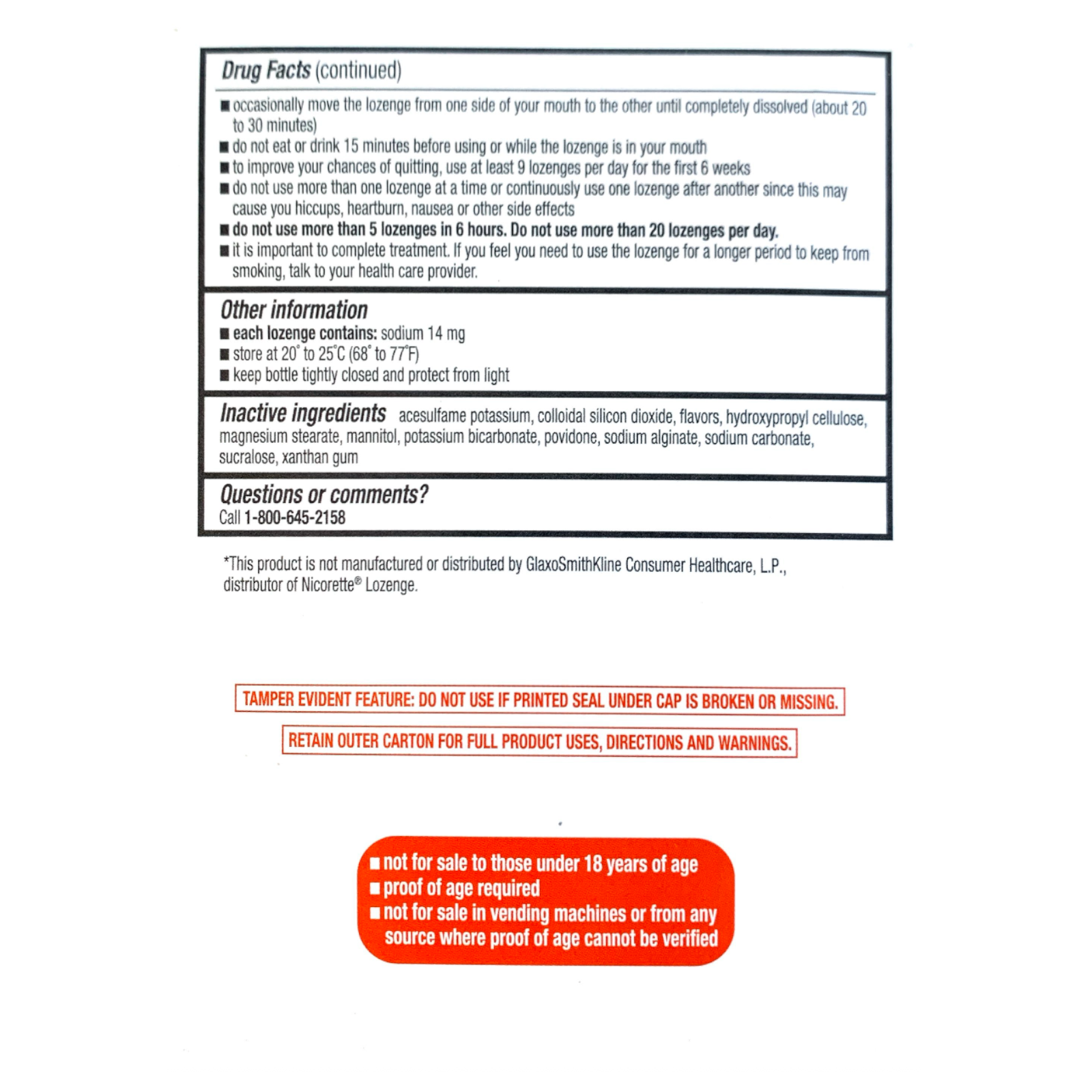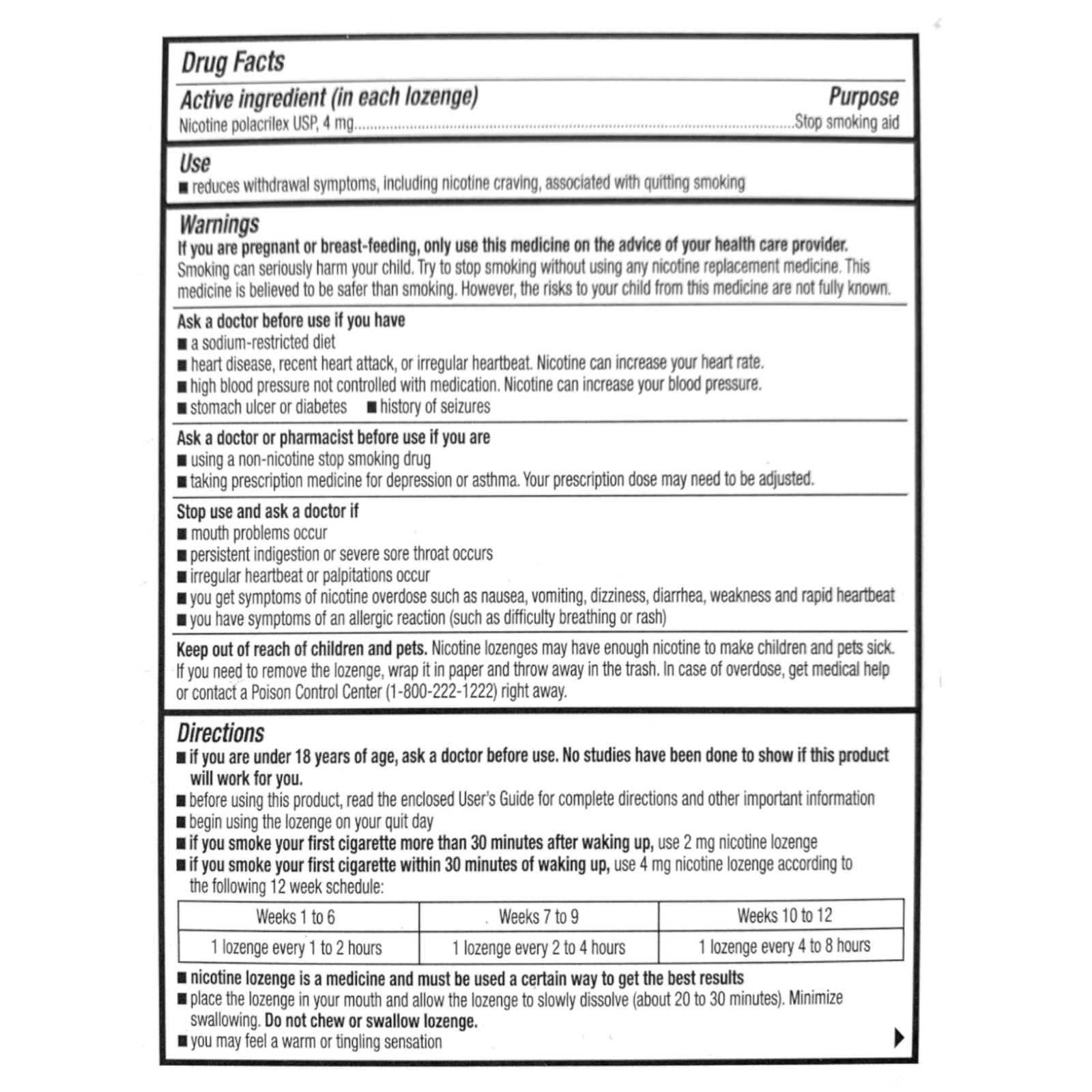 Each box of Rugby lozenges include printed information about the ingredients, warnings, and recommended use of this product. For best results, you should consult with a physician when starting your smoking cessation effort. You may not order this product if you are under 18 years of age.